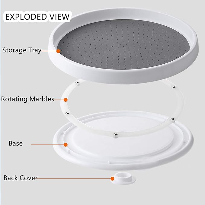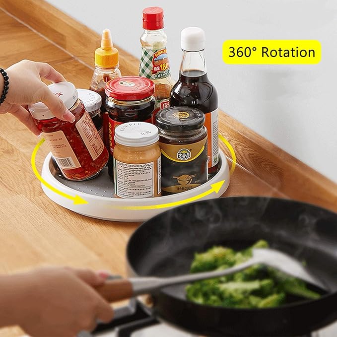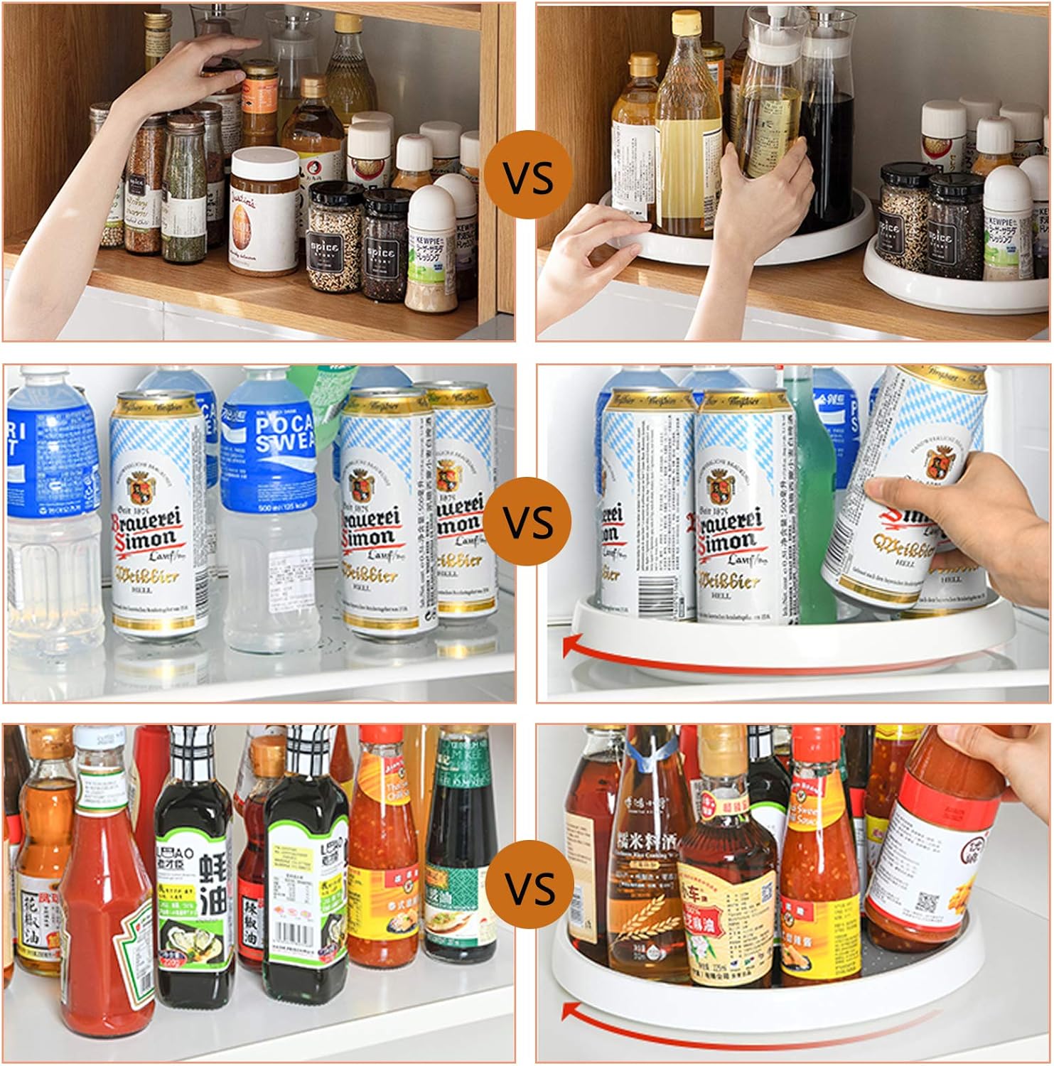 - The lazy susan turntable can be used as spice rack, medicine organization, can food storage and organizer for cosmetics, perfume, skincare products, figurines and office supplies.
