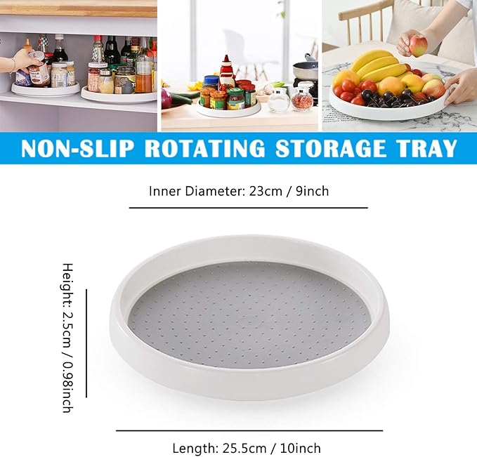 - The inner diameter 9-inch size fits most cabinets, refrigerators, pantries and dining tables.