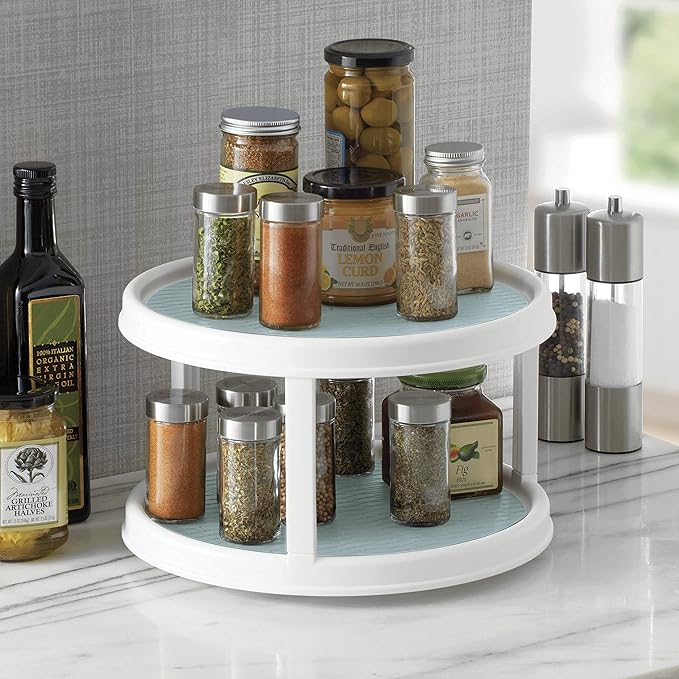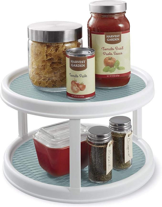 - Maximize Storage: The 12-inch, 2-tier design makes countertops, cabinets, closets, and even your refrigerator more organized and tidy. Double the storage capacity with this rotating organizer.
