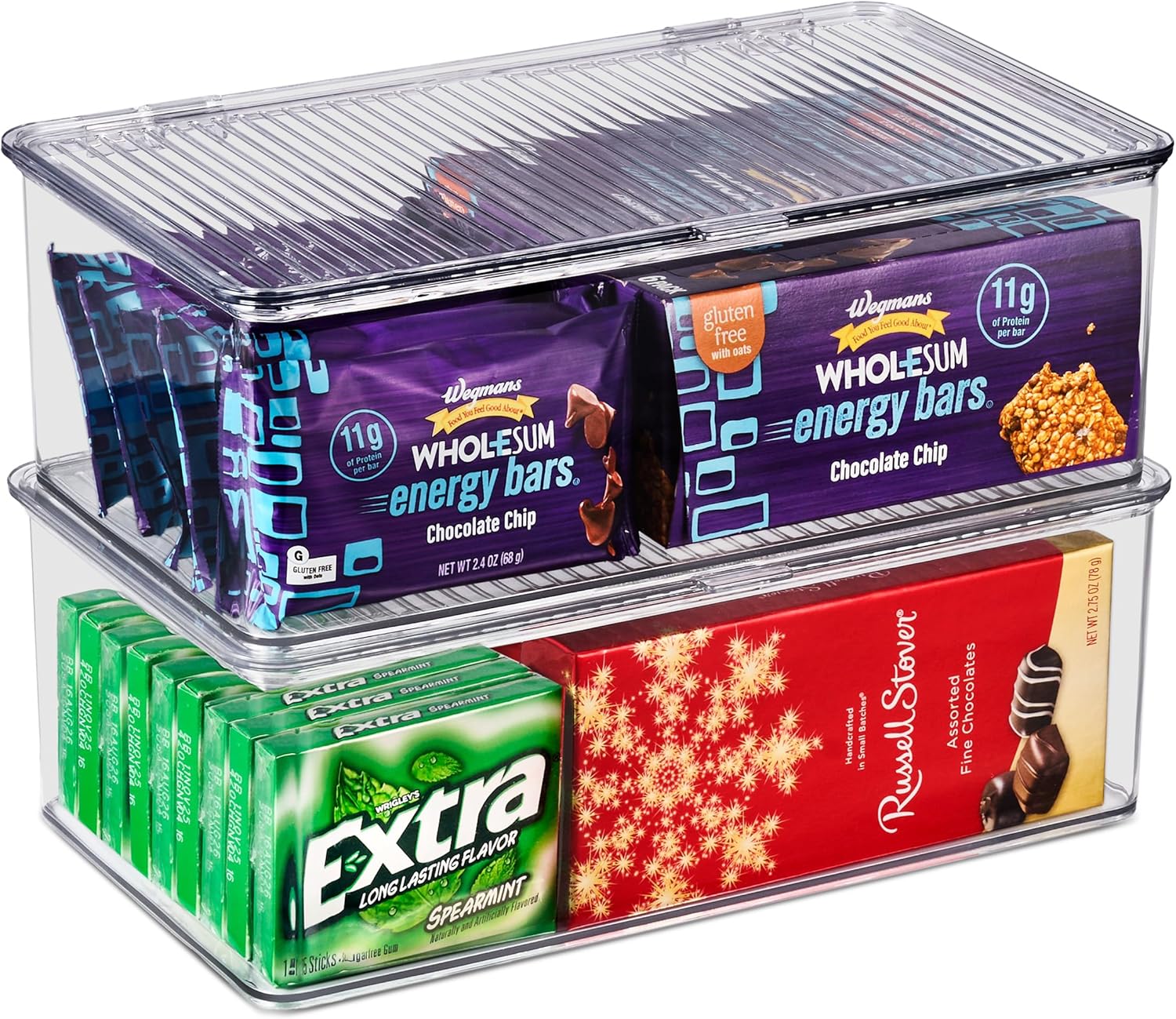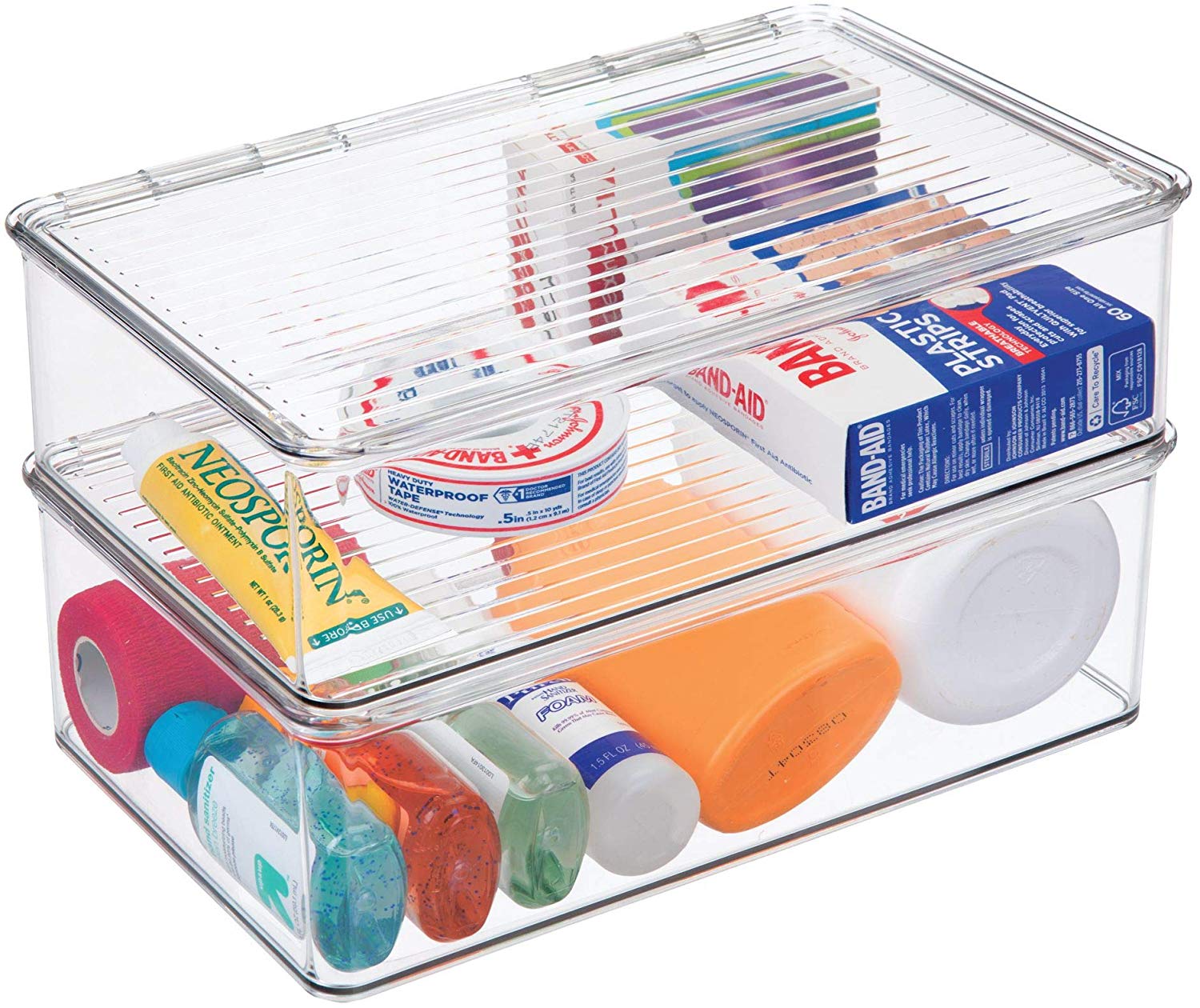 • STACKABLE: Hinged lids easily open to make grabbing what you need quick and easy; Clear view so you can easily find what you are looking for without opening the bins; Stackable design lets you create vertical storage to maximize storage spaces; Use individually or together to create a custom storage system that works for you; Keep items contained, organized and dust free; take advantage of vertical space to maximize your storage potential – stack and store